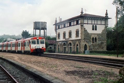 Curiosa coincidencia entre el ferrocarril del Urola y el directo a Galicia. La estación de Ordes-Pontagra es idéntica a la de Azpeitia, actual sede del Museo Vasco del Ferrocarril. Fotografía de Juanjo Olaizola Elordi