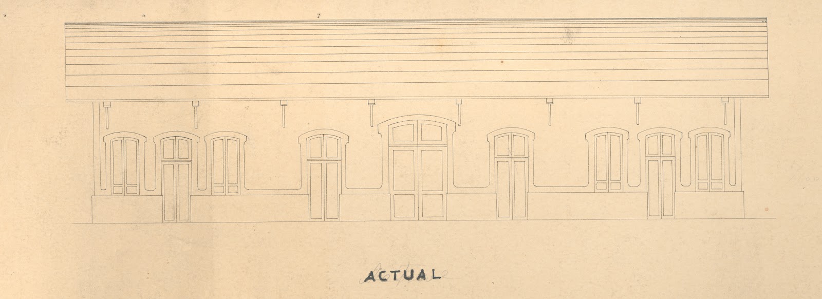 El edificio destinado al servicio de viajeros era de una sola planta en cuyo centro se ubicaba el vestíbulo, a la derecha la taquilla, el telégrafo y los despachos del jefe de estación el factor y la inspección, mientras que a la izquierda se emplazaba la vivienda para el jefe de estación compuesta de cocina, comedor y tres habitaciones.