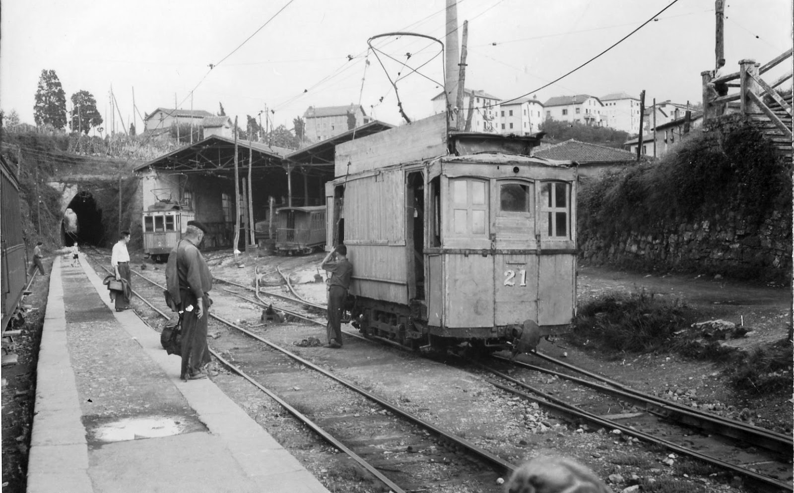 El 21 vino al mundo como tranvía de viajeros de dos ejes, construido en 1903 para la Compañía del Ferrocarril de San Sebastián a Hernani, empresa que, además de cubrir el trayecto que figuraba en su razón social, también pretendía establecer un servicio parcial, de carácter urbano, desde el centro de la capital guipuzcoana hasta el barrio de Amara. Finalmente, este proyecto fracasó ante la presión de la Compañía del Tranvía de San Sebastián, que estableció su propia línea de tranvías urbanos. En consecuencia, los seis pequeños tranvías de dos ejes adquiridos, apenas tenían utilidad por lo que no es de extrañar que, tres de ellos, fueran vendidos al vecino ferrocarril de San Sebastián a la frontera francesa, el popular "Topo", que los utilizó como pequeños tractores de mercancías.
