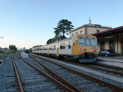 Modesto tren internacional de Renfe fotografiado en la estación de Valença. Fotografía de Martin Dieterich.