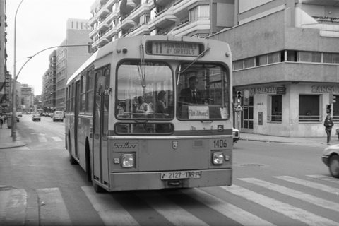 Para mi gusto, los Pegaso 6050, como éste de la Saltuv valenciana, han sido el modelo de autobús urbano más logrado de Enasa, aunque me consta que no comparten esta opinión quienes trabajaron con ellos, sobre todo en su siempre delicado mantenimiento. Fotografía de Juanjo Olaizola Elordi