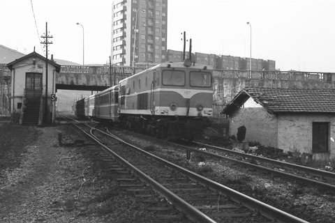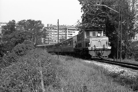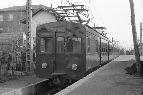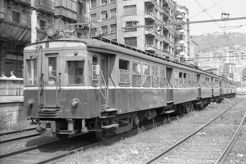 Tren ligero de Donostia a Bilbao fotografiado a su salida de Amara. Agosto de 1982. Fotografía de Juanjo Olaizola Elordi
