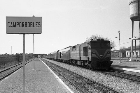 En los últimos días, la estación de Camporrobles ha estado de actualidad. En la imagen, tomada en abril de 1983, un Ómnibus procedente de Madrid realiza su entrada. Fotografía de Juanjo Olaizola Elordi