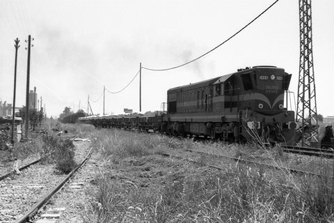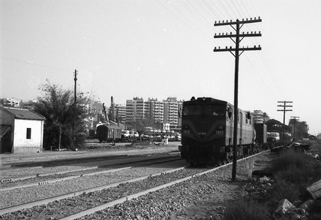 Tren de mercancías fotografiado en la desaparecida estación de Alacant-Benalua. Junio de 1983.Fotografía de Juanjo Olaizola Elordi