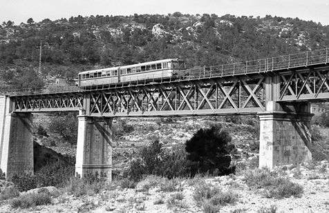 Ferrobús fotografiado sobre el viaducto del Roquillo (Bunyol) en mayo de 1983. Fotografía de Juanjo Olaizola Elordi