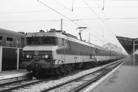 Las locomotoras CC-6500 de la SNCF aunaban belleza y potencia. Irún, abril de 1982. Fotografía de Juanjo Olaizola Elordi