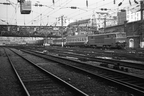 Estación del Norte de París. Salida de un variopinto expreso que, en su composición, incluía un coche directo a Moscú. Septiembre de 1984. Fotografía de Juanjo Olaizola Elordi