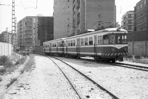 Unidad 1021-1071 del trenet de Valencia, fotografiada en Valencia-Jesús en septiembre de 1982.Fotografía de Juanjo Olaizola Elordi