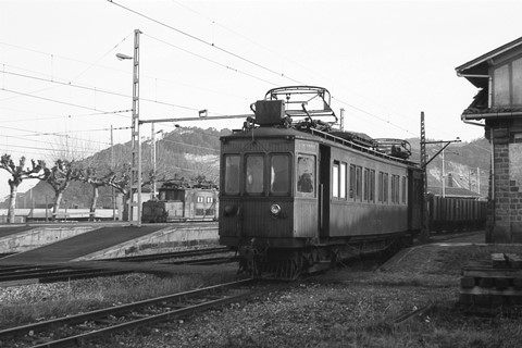 Automotor del Ferrocarril del Urola fotografiado en Zumaia en julio de 1982. Fotografía de Juanjo Olaizola Elordi