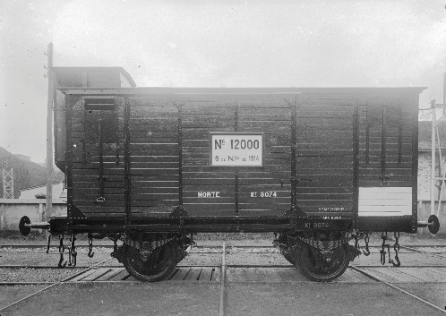 Vagón Nº 12.000 entregado por la Fábrica de Vagones de Beasain, entregado a la Compañía del Norte el 6 de noviembre de 1914. Archivo CAF