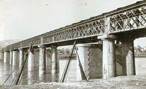 Vista del primero de los viaductos ferroviarios sobre el Ebro en Tortosa. Archivo del Museo del Ferrocarril de Vilanova i la Geltrú