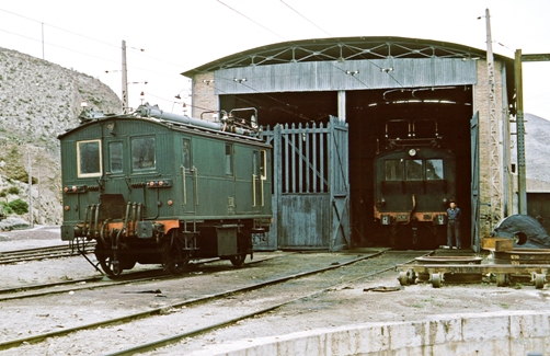En el depósito de Santa Fe dos locomotoras construidas por la suiza Brown Boveri para la primera electrificación de la vía ancha española. Fotografía de Peter Willen