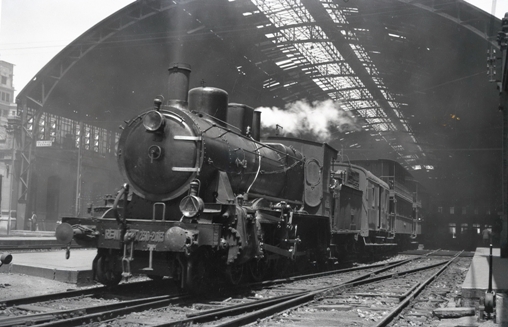 Tren de cercanías, con los característicos coches de dos pisos utilizados en València, bajo la bella marquesina diseñada por Enrique Grasset. Fotografía de Trevor Rowe. Archivo EuskoTren/Museo Vasco del Ferrocarril