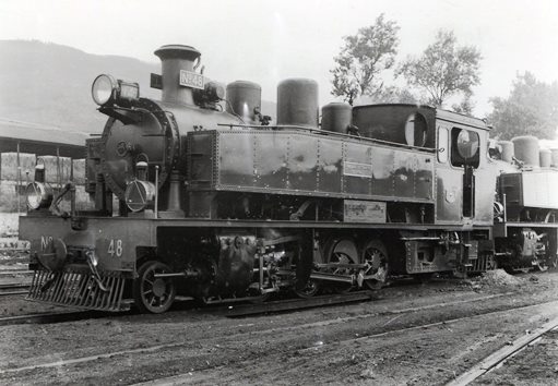 Locomotora Nº 48 de los Ferrocarriles Económicos de Asturias. Fotografía de Lawrence G. Marshall