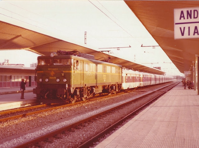 Aunque, como ya apuntaba más arriba,las primeras "japonesas" 269 salieron de fábrica en 1973, la primera foto que conservo de ellas es de finales de 1976 o principios de 1977 en la estación de Girona conduciendo al talgo Madrid-Barcelona-Cèrbere. Se trataba, creo de la 269-060, perteneciente en este caso al depósito de Can Tunís.
