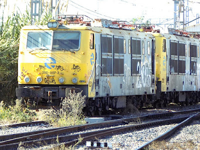En el año 2010 todas las locomotoras estaban dadas de baja. Cuatro años después, varias de ellas permanecen apartadas en el depósito de Valencia-Fuente de San Luis supongo que esperando su desguace.