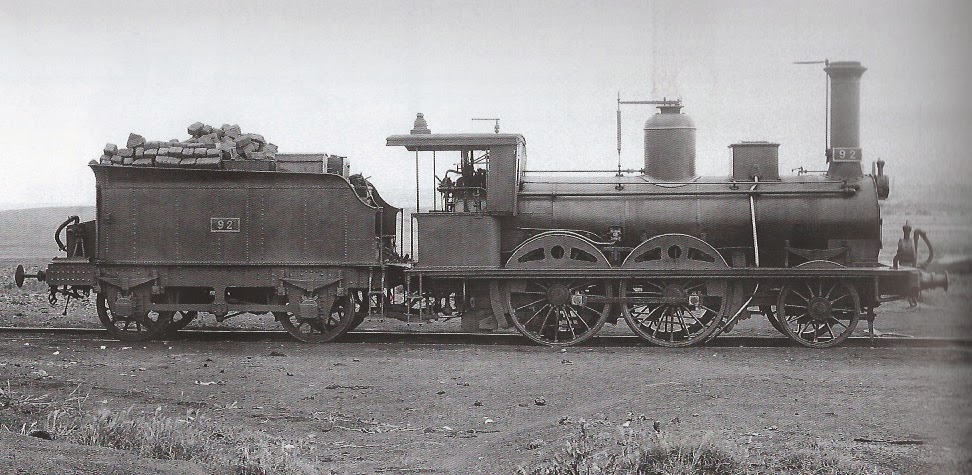 | Locomotora MZA 92.Cuatro locomotoras similares a éstas fueron cedidas por MZA al Córdoba-Málaga. Parece ser que ambas compañías estaban muy relacionadas. (Foto: archivo del Museo del Ferrocarril) |