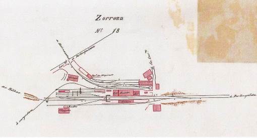 Esquema de la estación de Zorroza, punto de enlace del ferrocarril del Cadagua con el de Bilbao a Portugalete. Archivo EuskoTren/Museo Vasco del Ferrocarril