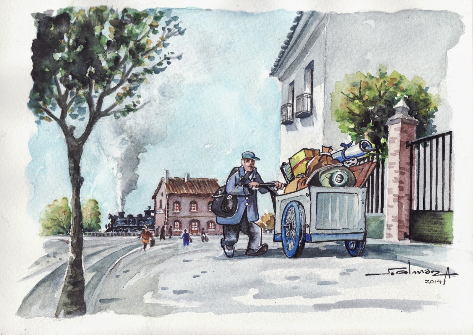 Y a todo esto ¿dónde estaba yo? Pues esta vez, no junto a la locomotora, sino asistiendo a la penúltima liturgia ferroviaria del día. Me gustaba ver como Luis, el ordinario (el recadero) arrojaba con destreza por la ventanilla hacia su ayudante los numerosos bultos que traía de Madrid; lo hacía con toda rapidez porque el tren podía arrancar ya en cualquier momento. Mientras tanto, algunos impacientes a su alrededor preguntaban por sus encargos; a todos atendía Luis y a todos daba informaciones y razones.
