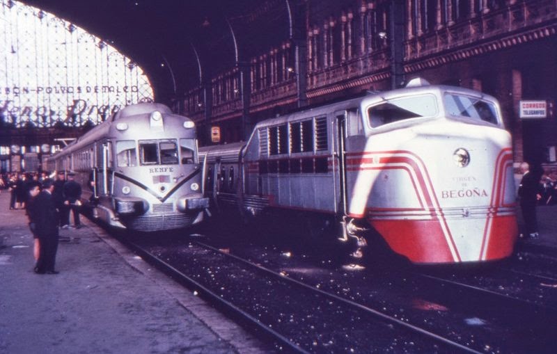 | El Talgo II en la estación de Atocha de Madrid, dispuesto a efectuar su servicio (foto de autor desconocido) |