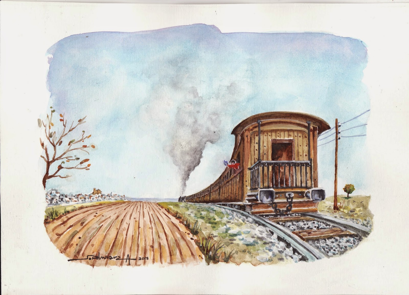 | El tren de las cinco y veinte entre Villarrubia y Santa Cruz (ilustración de Santiago Almarza) |