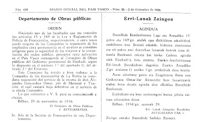 El 29 de noviembre de 1936 Alejandro Goicoechea fue cesado por el Gobierno Vasco en su cargo de jefe de material móvil de La Robla al sospecharse su afinidad con los sublevados. Incomprensiblemente, poco después se contó con él para el diseño de las defensas de Bilbao. Archivo EuskoTren/Museo Vasco del Ferrocarril