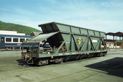 Moderna tolva para el transporte de carbón utilizada por FEVE en el ferrocarril de La Robla. Fotografía de Juanjo Olaizola Elordi