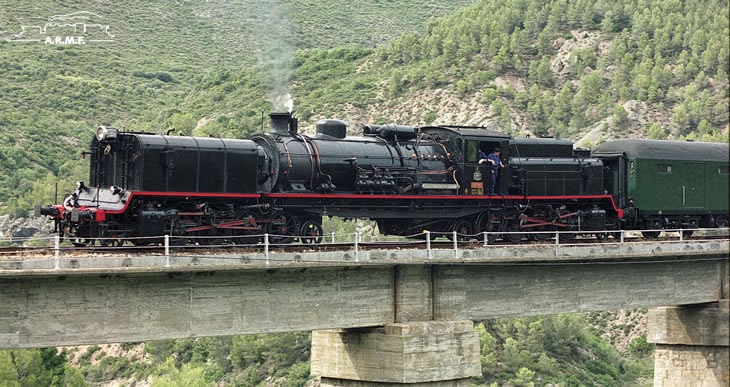 Ignoro el tiempo que permaneció en Madrid la locomotora. Ya en 1996 se hace cargo de ella la entonces recién fundada Asociación para la Recuperación de Material Ferroviario (ARMF) de Lleida que hace, una vez más, un estupendo trabajo con ella y la dedica a trenes históricos y conmemorativos y especialmente al remolque del Tren dels Llacs en el tramo entre Lleida y Balaguer.