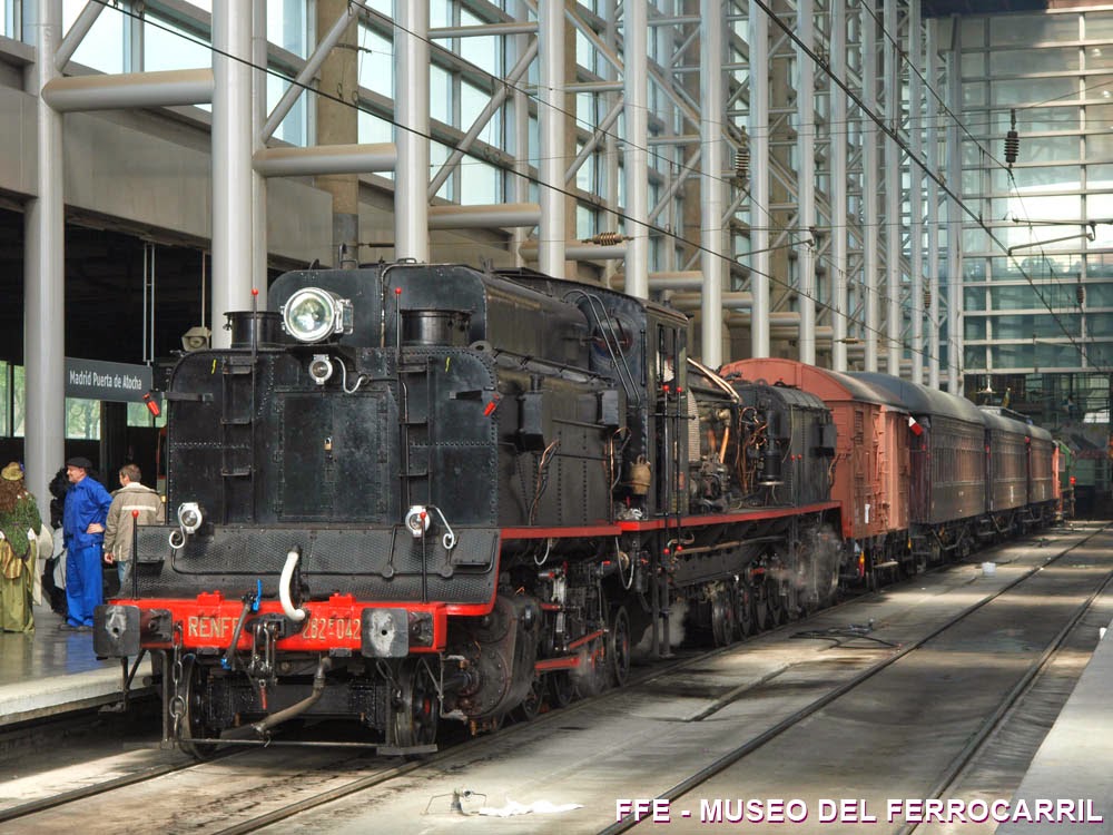 A veces uno duda si algunos recuerdos de la infancia son ciertos o uno los imagina atando cabos de aquí y de allá. Con la garrafeta, o mejor, con las garrafetas me ocurre eso. Tengo la sensación de que allá, por la primera mitad de los 60, vi a una de ellas pasar o maniobrar en la estación de Aranjuez mientras yo estaba sentado en un costa esperando la salida del mixto Aranjuez-Cuenca. Recuerdo ver pasar por la vía de al lado una locomotora muy rara, como si llevara el ténder por delante...y luego otro ténder... ¿No era una garrafeta? ...¿Sí lo era y estaba haciendo alguna prueba o presentación en aquel momento en que estaban recién construidas?...En fin, imaginado o no, ese es mi primer recuerdo de una de estas locomotoras. Después, mi único contacto con ellas fue en sus esporádicas visitas a Madrid con motivo de alguna jornada de puertas abiertas en el Museo o de la temporada del tren de la Fresa de 2008 en la que actuó, no sé si total o parcialmente, como locomotora titular.