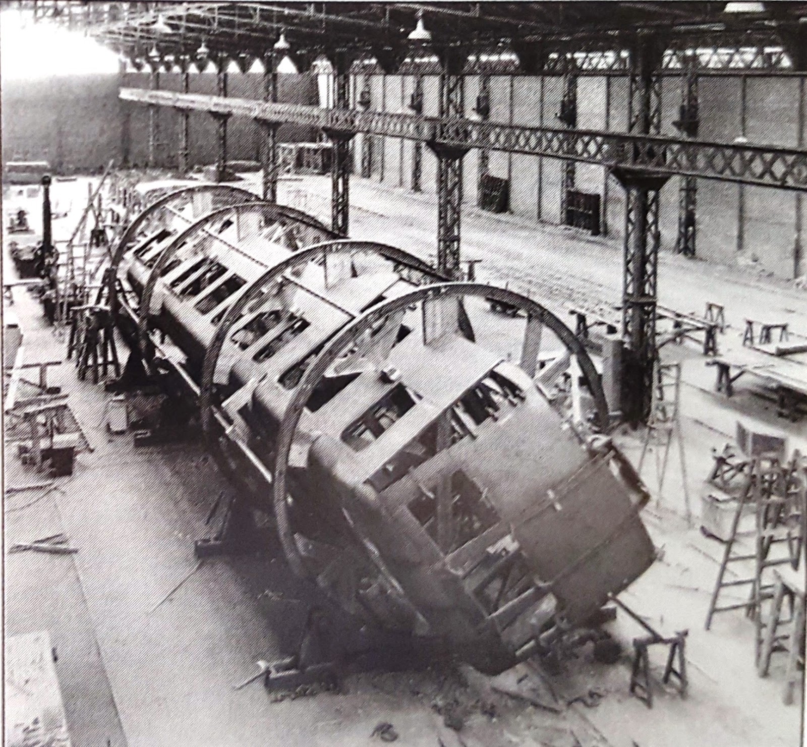 | Construcción de un Burmeister en los talleres de La Maquinista (foto: catálogo MTM/archivo Josep Calvera) |