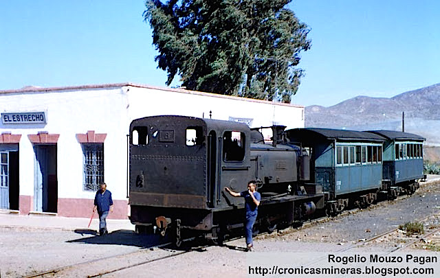 | Vista trasera de la "Júpiter" estacionada con su tren en El Estrecho (foto: fondo Ángel Ros; del fondo de Rogelio Mouzo/blog Crónicas Mineras) |