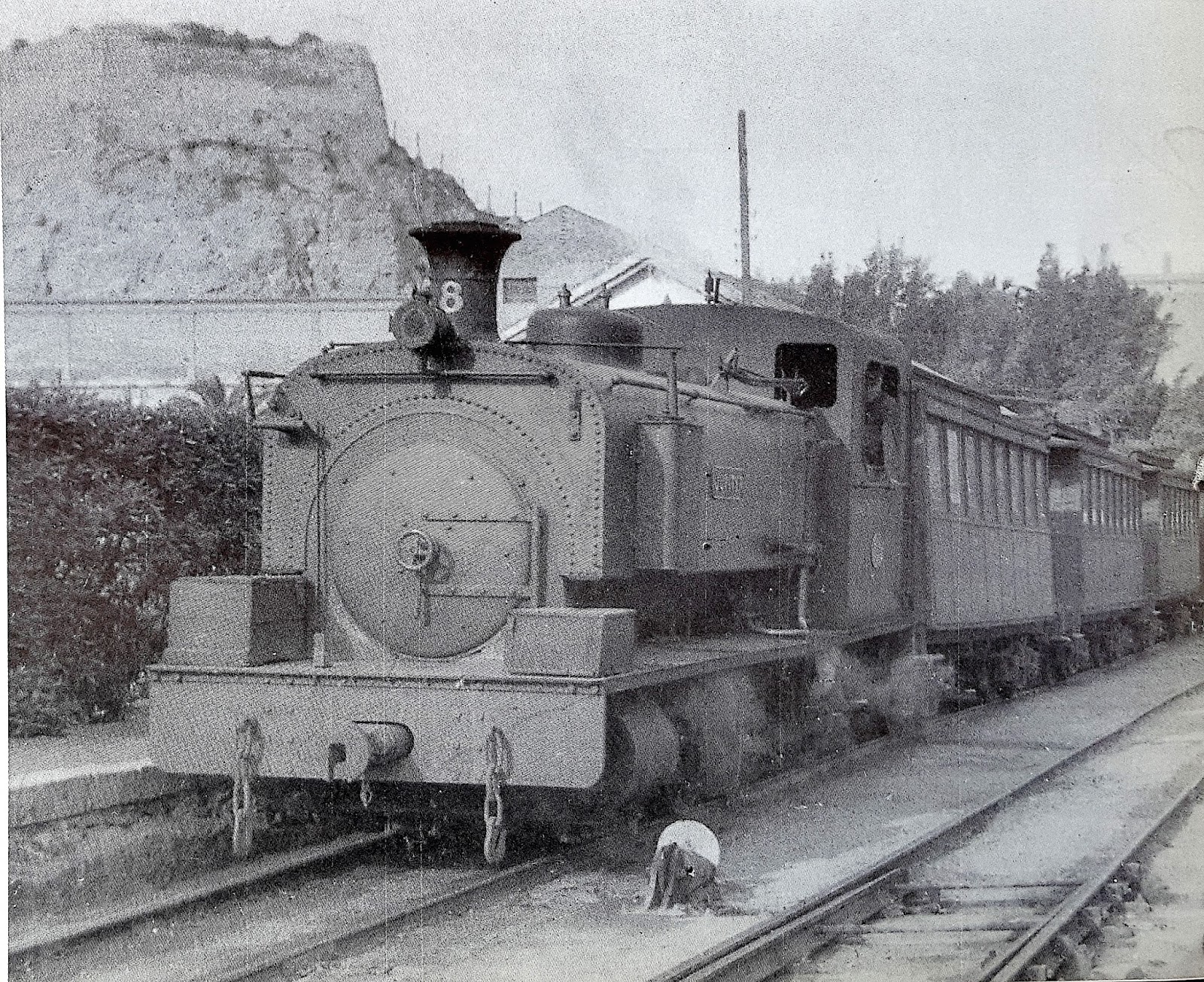 | La nº 8 "Júpiter" en la estación de Cartagena en 1956 (foto: Trevor Rowe) |