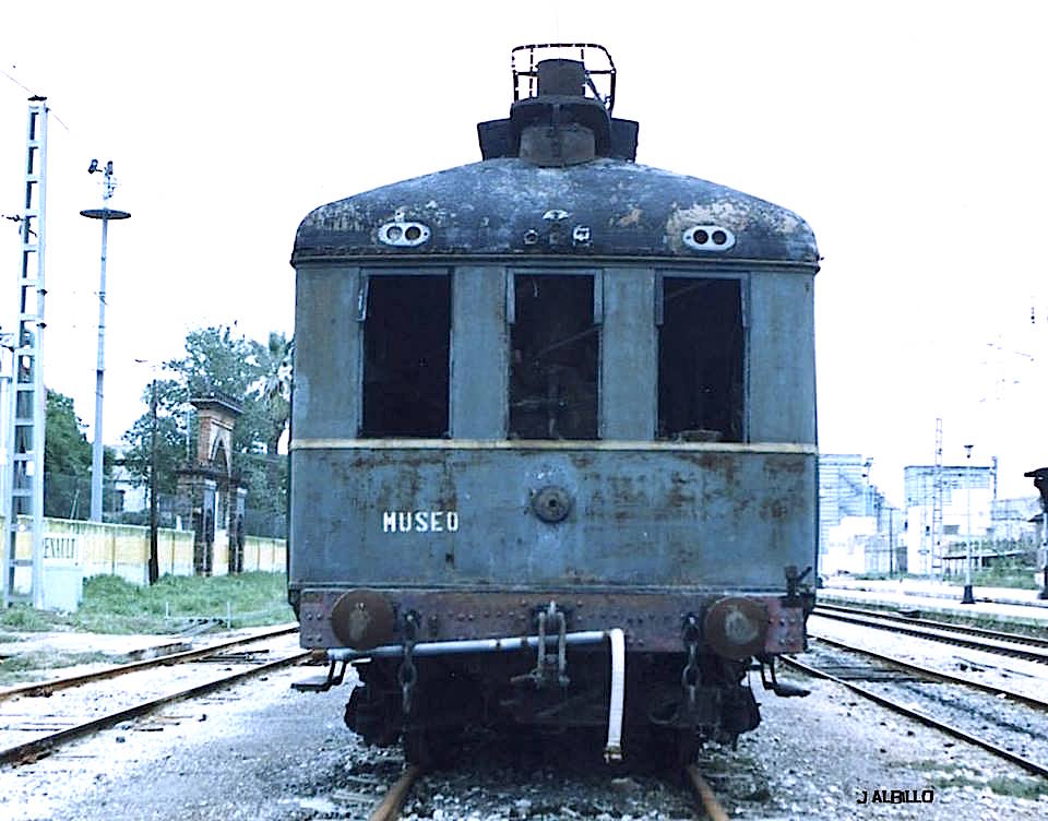 | Esta foto de J. Albillo tomada en la estación sevillana de San Jerónimo en fecha indeterminada, lo muestra ya bastante deteriorado esperando su traslado al Museo. |