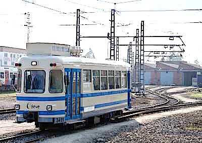 El 3411 en Pravia, en sus pruebas como tranvía con motor de hidrógeno; un proyecto que supongo ya abandonado (foto: autor desconocido)