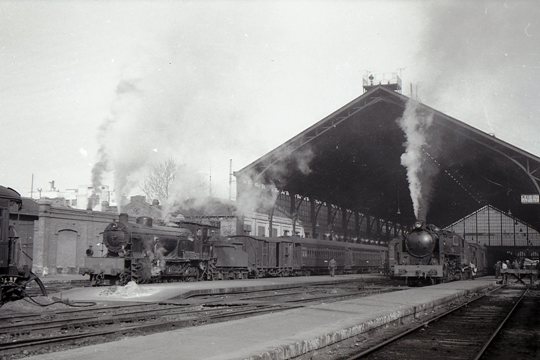 Vista de la estación de Madrid-Delicias tomada en los años cincuenta. Fotografía de Trevor Rowe. Archivo Euskotren/Museo Vasco del Ferrocarril