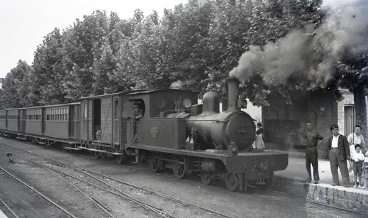 Tren de vapor del ferrocarril de Tortosa a La Cava, encabezado por la locomotora Nº 1. Fotografía de Martin von Simson. Archivo Euskotren/Museo Vasco del Ferrocarril