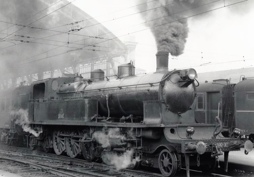 La tracción eléctrica eliminó los malos humos del tren. Fotografía de Lawrence G. Marshall. Abando, 1956