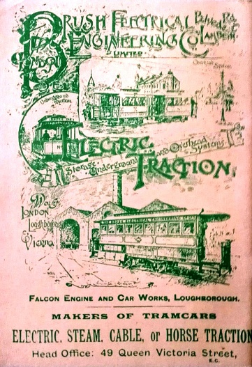 Publicidad de la firma Brush Electric, responsable del primer intento de electrificación del tranvía de Bilbao a Santurtzi. Archivo Euskotren/Museo Vasco del Ferrocarril