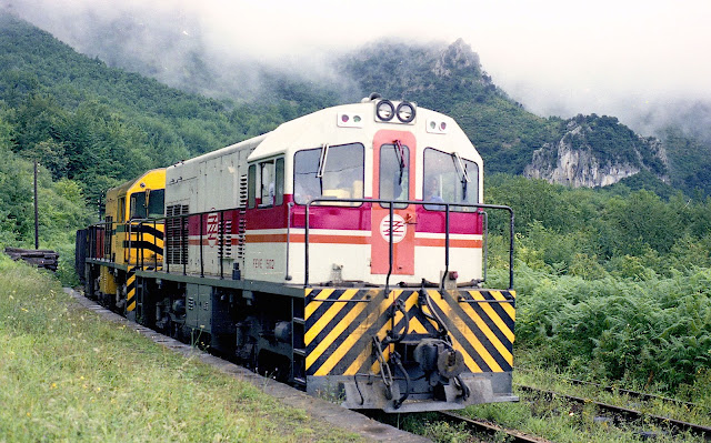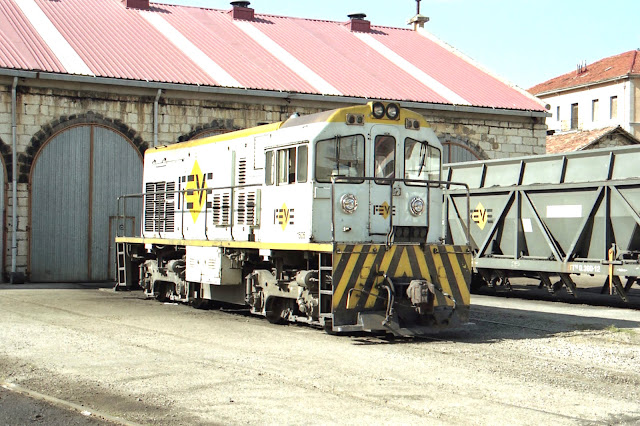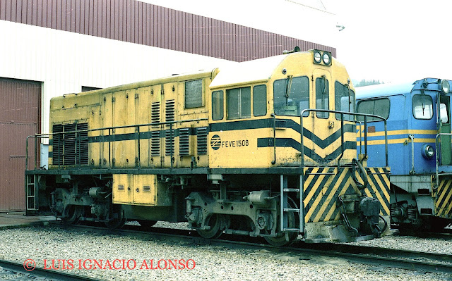 Cuando en el año 2000, el Tajuña cesó en sus actividades, las cinco locomotoras fueron adquiridas por FEVE y renumeradas como 1511 a 1515, continuando así la serie 1500 y evitando la coincidencia con las Henschel 1401 a 1405 a las que ya dediqué una entrada anterior. Recibieron un motor Caterpillar idéntico a las "Robla" y sufrieron algunas modificaciones para adaptarlas a sus nuevas tareas. Desde entonces compartieron servicios con las otras locomotoras circulando muy frecuentemente en mando múltiple con ellas.