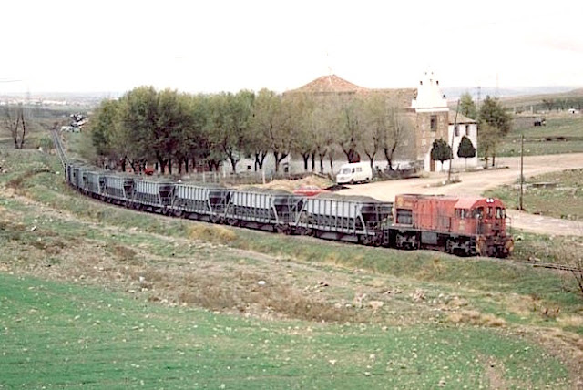 | Una GECo del Tajuña arrastrando un tren de tolvas (foto: autor desconocido) |