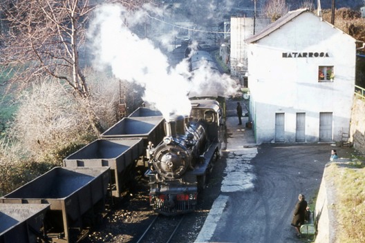 Un tren de carbón maniobra en la estación de Villablino. Fotografía de Xavier Santamaría