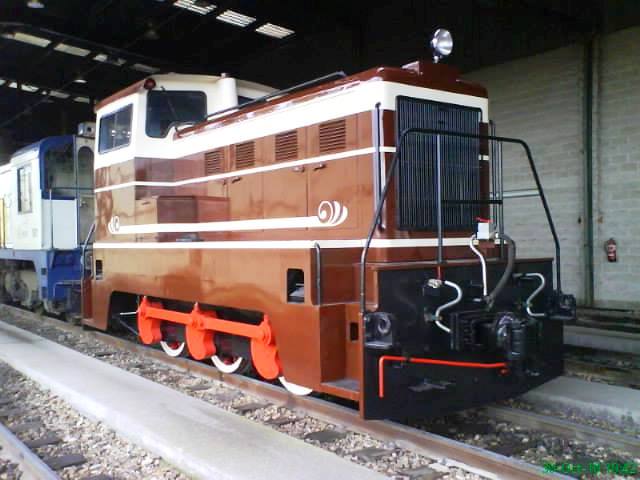 | El FR 207, luego 1324 en FEVE, totalmente remozasdo y con la librea de Ferrocarriles de La Robla en el Museo Vasco del Ferrocarril ( foto: Museo Vasco) |