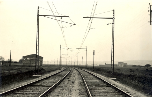 Vista general de la electrificación de Barcelona a Zaragoza. Archivo Euskotren/Museo Vasco del Ferrocarril
