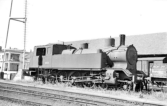 Nunca he sido muy entusiasta de las locomotoras tanque pero debo reconocer que las 2-3-2 "Baltic" que Maffei construyó entre 1903 y 1911 para las cercanías de MZA presentaban una armonía de líneas que superaba a muchas de las locomotoras con tender. Eran unas locomotoras con una potencia de 912 CV, un timbre de 12 kg/cm2, un diámetro de ruedas motoras de 1,544 metros y un esfuerzo de tracción de 6321 kg. Una característica curiosa de estas locomotoras era que iban dotadas de un compresor de vapor que alimentaba un circuito de aire comprimido, aunque también se las dotó con el freno de vacío vigente en MZA primero y RENFE después. El compresor fue suprimido ya en tiempos de la RENFE.