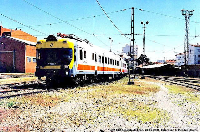 | El 432-018 en Medina del Campo el 19 de mayo de 2001. Al parecer estaba a la espera de pasar por talleres (foto e información: J. A. Méndez Marcos) |