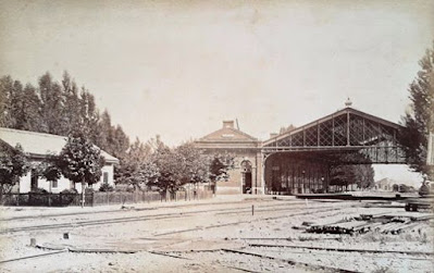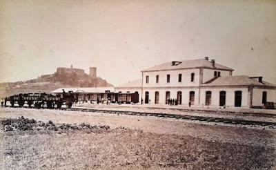 | Primitiva estación de A Coruña. Fotografía de Jean Laurent. Archivo Euskotren/Museo Vasco del Ferrocarril |