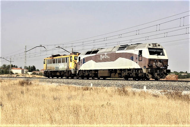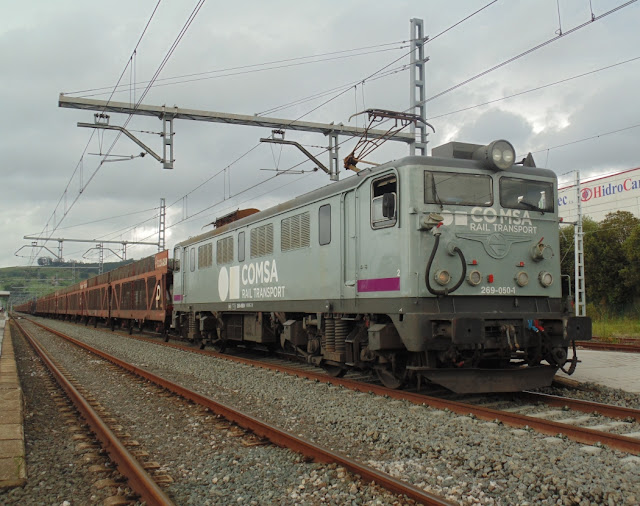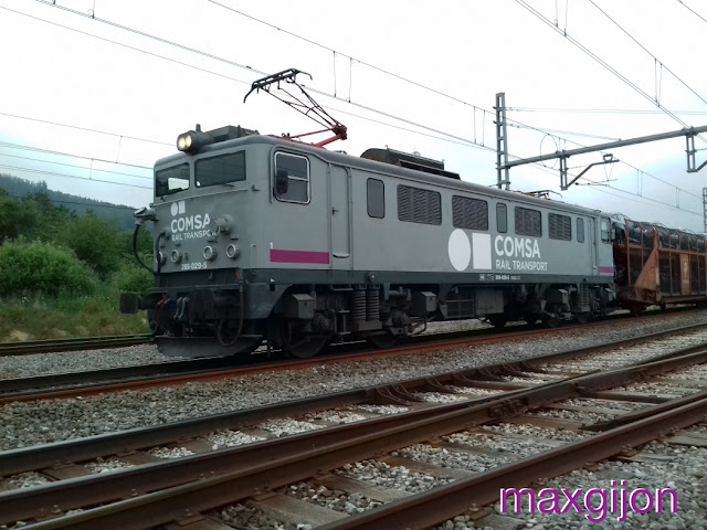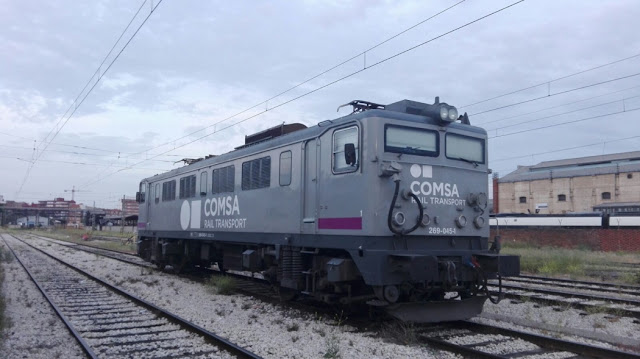 | La 269-029 alquilada por COMSA con un tren de coches. Agosto de 2016 (foto: Manuel Ángel Rodriguez) |