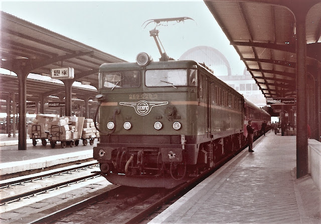 | En junio de 1981 la 269-099 aparece en la estación de Madrid-Chamartín en cabeza de un tren hacia el norte (Foto: Ángel Rivera) |