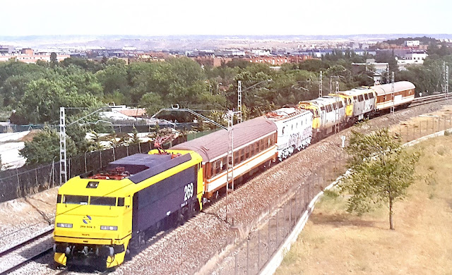 En una entrada anterior nos referimos a las 269 "primigenias", las series 269.0 y 269.5. Dados sus excelentes resultados y los requerimientos que se avecinaban -entre ellos el aumento de las velocidades máximas a 160 km/h- RENFE decidió muy a finales de los años setenta una sustanciosa ampliación de la serie creando la subserie 200. Así mismo se contrató una pequeña serie "experimental" de cuatro unidades, denominada 600 dotada de tecnología "chopper" y de sistema de velocidad prefijada. De ambas subseries y de las transformaciones sufridas por "las doscientas", me ocupo en esta entrada.
