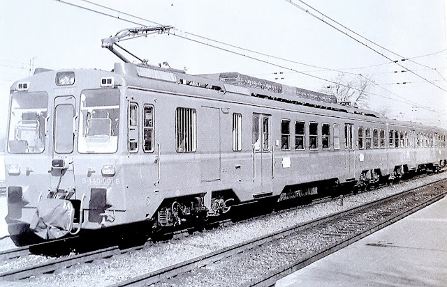 Como hemos visto en algunas entradas anteriores, RENFE trataba de atender como podía a la amplia demanda de servicios de cercanías y de media distancia en las líneas que se iban electrificando a 3000 V en los finales de los 60 y principios de los 70. Lo hacía básicamente mediante las reformas de las unidades de la serie 436. Sin embargo, esa solución no era suficiente y, por otra parte, el Plan RENFE 1972-1975 contemplaba la instauración de servicios a 140 km/h, así como una mejor atención a las cercanías. Para hacer frente a esos compromisos, la compañía decidió la adquisición de un gran número de unidades eléctricas dotadas de más comodidades y de una buena aceleración. Si bien el contrato inicial fue de 30 unidades, al final se construyeron nada menos que 255 y en su realización intervinieron la mayor parte de las empresas españolas de material ferroviario. La dirección y coordinación general correspondía a CAF que fabricó también la parte mecánica -cajas y bogies- bajo licencia de la compañía suiza Schindler. Los equipos eléctricos fueron construidos por WESA bajo licencia MELCO (Mitsubishi), mientras que algunos componentes fueron importados directamente de Japón. La primera unidad fue entregada en 1974, y la última en 1985. Constituyeron la serie 440 o "cuatrocuarenta", la que, durante 30 años, más kilómetros ha recorrido por las vías españolas. Y quizás sea también la serie más popular por el público dada su casi continua presencia por la inmensa mayoría de la red electrificada, así como por su fiabilidad y su legendaria comodidad.